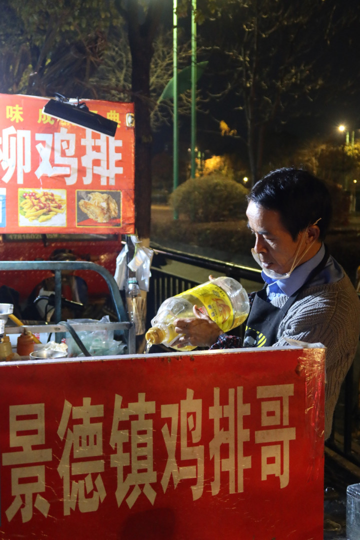 一位卖柠檬茶的摊主选择留下。他坦言,目前的销售额不如国庆,“那时一天能卖2000块钱,现在骤减了四分之一”,但也有好处,他不用再辗转6个地方才能挣到同样的收入。他很知足,打算换辆更大的摊车,再雇个帮手,在“鸡排家族”摊位两侧各开一摊,相信能赚得更多。